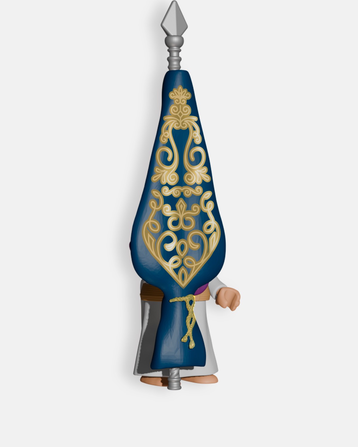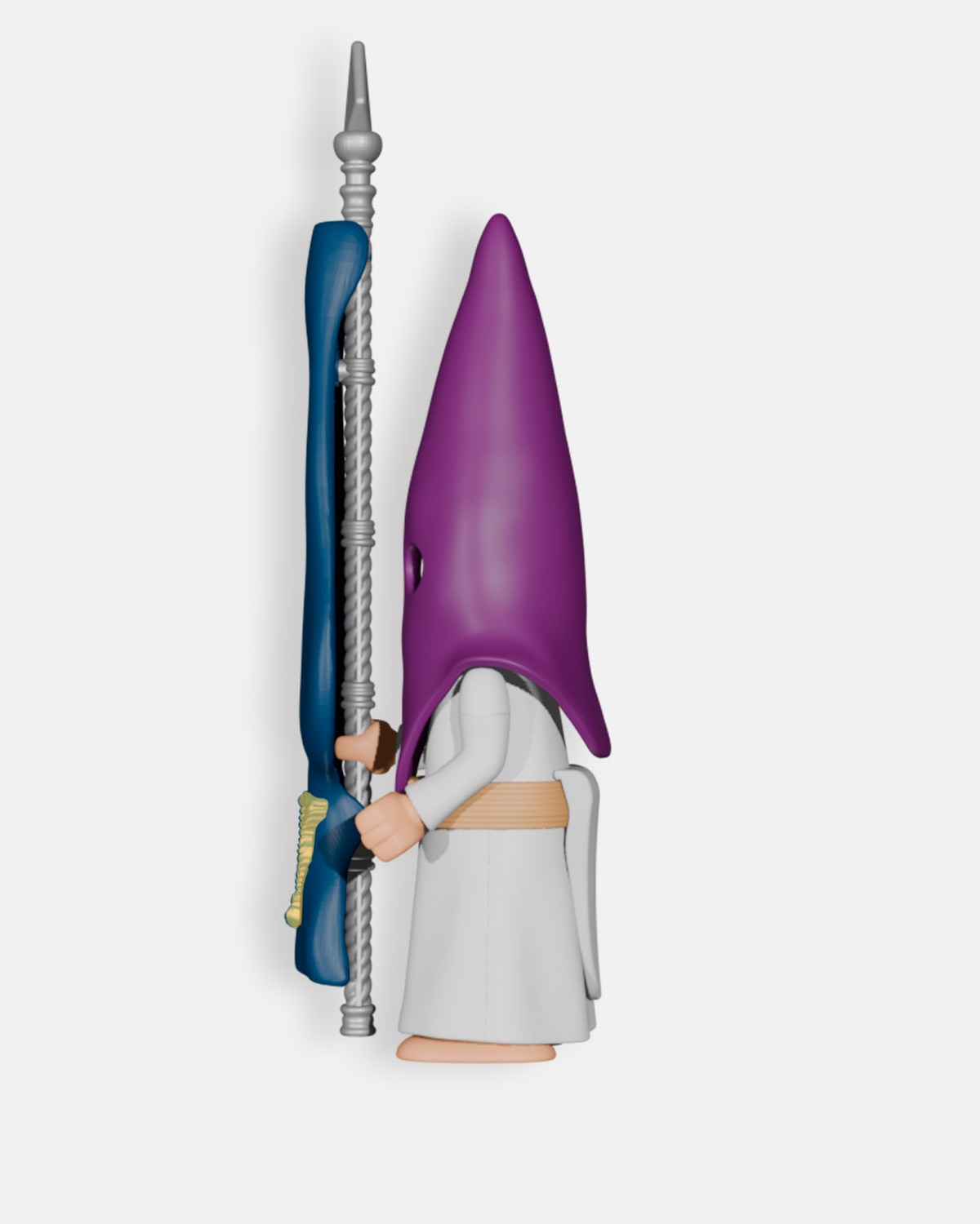 El Nazareno Cola Morado Bacalao B1015 de Artabán Juguetes representa un nazareno con túnica morada y capirote alto, portando un bacalao azul con detalles dorados y una cola que añade movimiento a la figura. Fabricado con materiales resistentes y seguros, mantiene la fisionomía característica de los muñecos de la colección. Perfecto para aficionados a las procesiones de Semana Santa, permite conservar un elemento representativo de los pasos y puede exponerse o regalarse.