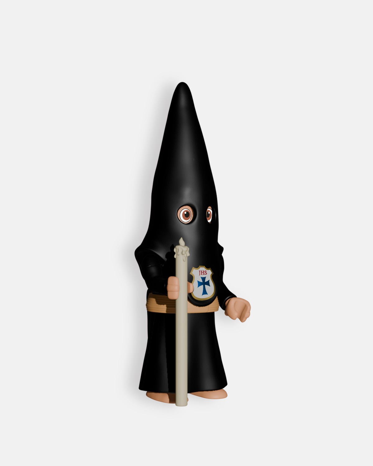 Fabricado con materiales duraderos, este muñeco refleja con precisión los elementos típicos de los nazarenos de cola, incluyendo la túnica de cola, el capirote, el cinturón de esparto y el cirio, diseñado para evocar los desfiles procesionales de manera fiel y elegante.