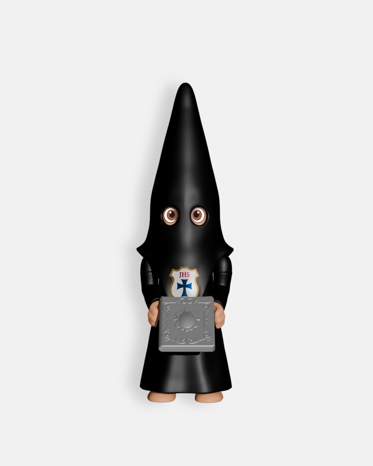 Fabricado con materiales duraderos, este muñeco refleja con precisión los elementos típicos de los nazarenos de cola, incluyendo la túnica de cola, el capirote, el cinturón de esparto y el libro de reglas, diseñado para evocar los desfiles procesionales de manera fiel y elegante.
