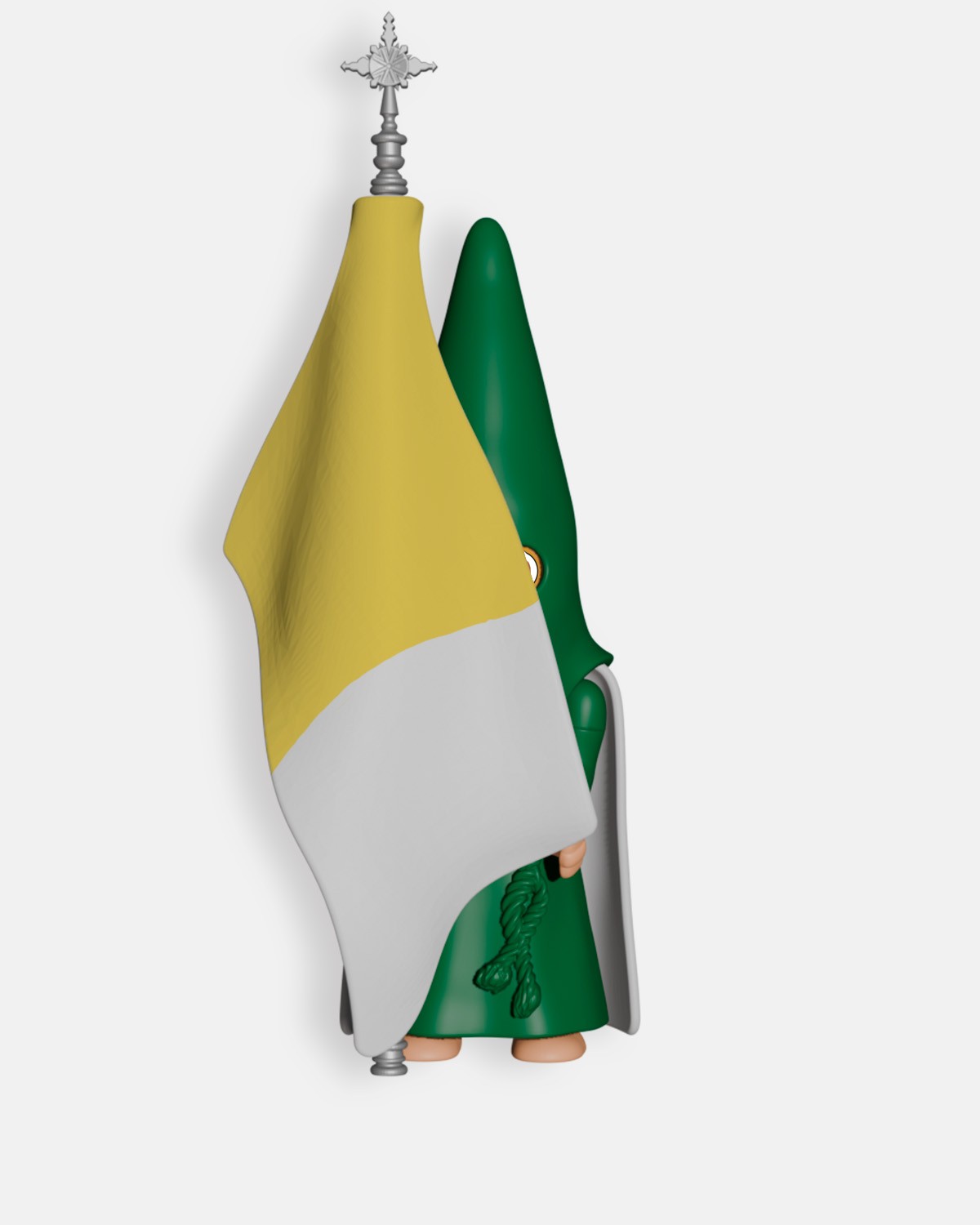 El Nazareno Verde Bandera Pontificia B0005 de Artabán Juguetes representa un nazareno con túnica, antifaz y cíngulo verdes y capa blanca, portando la Bandera Pontificia, utilizada para marcar el comienzo de un nuevo tramo en la procesión y simbolizar el poder espiritual del Papa durante los desfiles procesionales de Semana Santa. Fabricado con materiales resistentes y seguros, mantiene la fisionomía característica de los muñecos de la colección. Perfecto para aficionados a la Semana Santa, permite conservar un elemento representativo de los pasos y puede exponerse o regalarse.