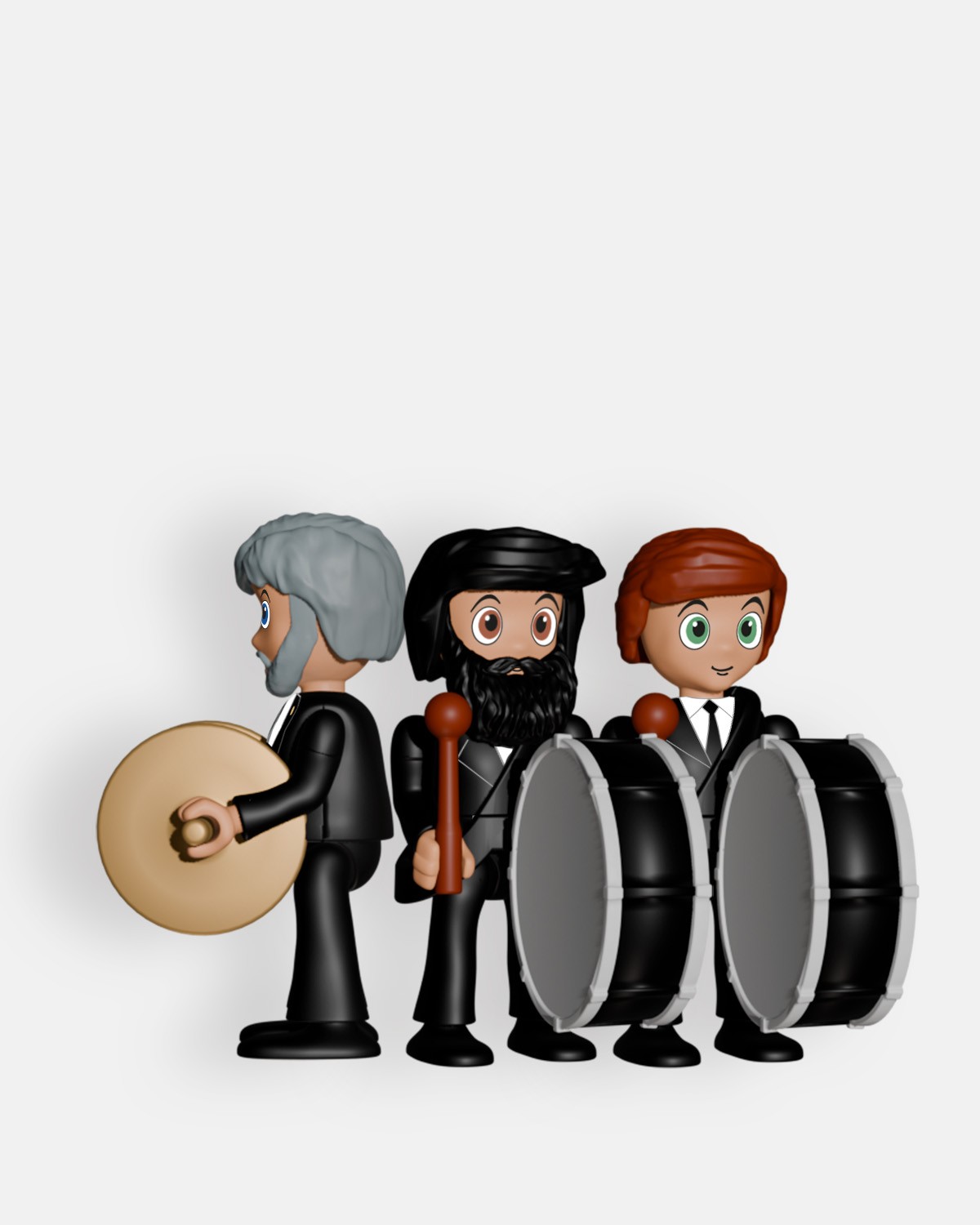 El Pack 3 Músicos 2 Bombos y Platillo P9006 de Artabán Juguetes incluye tres figuras de músicos con traje de chaqueta negra, camisa blanca, corbata y zapatos negros, portando 2 bombos y 1 platillo, instrumentos de percusión tradicionales de los cortejos procesionales durante los desfiles de Semana Santa. Fabricadas con materiales resistentes y diseño detallado, estas figuras reproducen fielmente la postura, expresión y vestimenta de los músicos, aportando autenticidad y realismo a cualquier colección. Ideal para aficionados y coleccionistas, permite complementar tramos procesionales o recrear escenas de la Semana Santa.