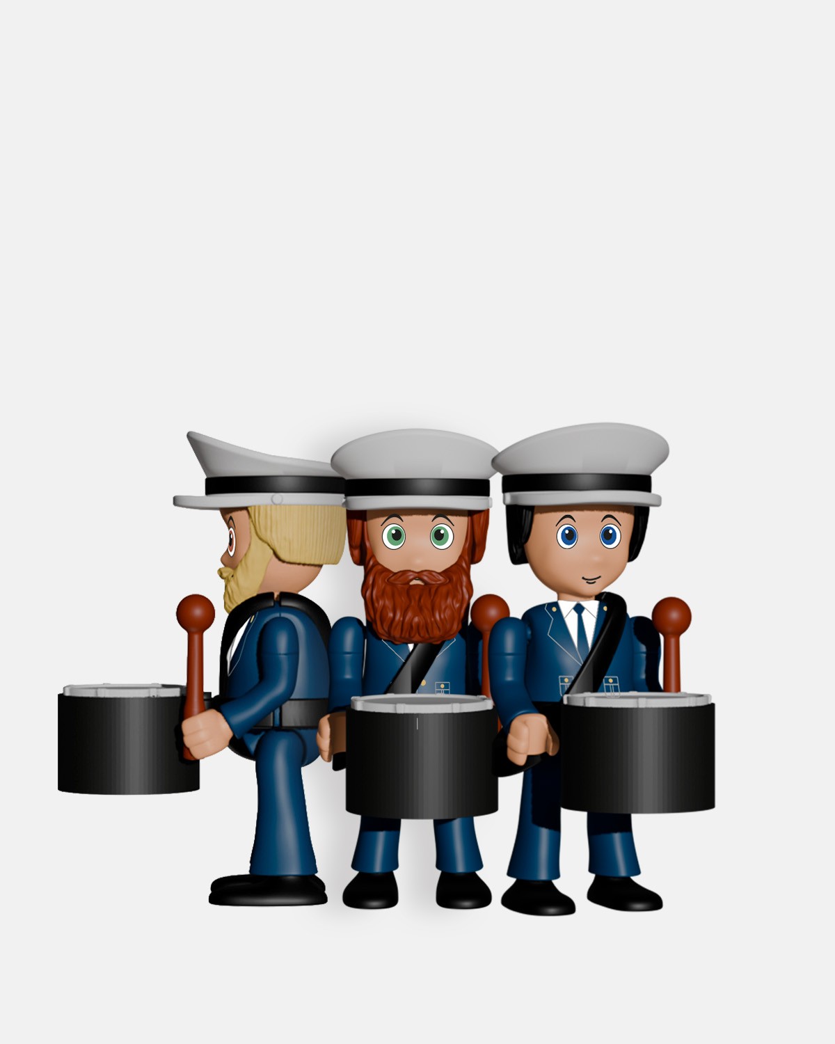 El Pack 3 Músicos con Gorra y 3 Bombos P9003 de Artabán Juguetes incluye tres figuras de músicos con chaqueta azul, pantalón azul, corbata azul, zapatos negros y gorra de plato blanca, portando 3 bombos, instrumentos de percusión utilizados en los desfiles procesionales de Semana Santa. Fabricadas con materiales resistentes y diseño detallado, estas figuras reproducen fielmente la postura, expresión y vestimenta de los músicos, aportando autenticidad y realismo a cualquier colección. Ideal para aficionados y coleccionistas, permite complementar tramos procesionales o recrear escenas de la Semana Santa.