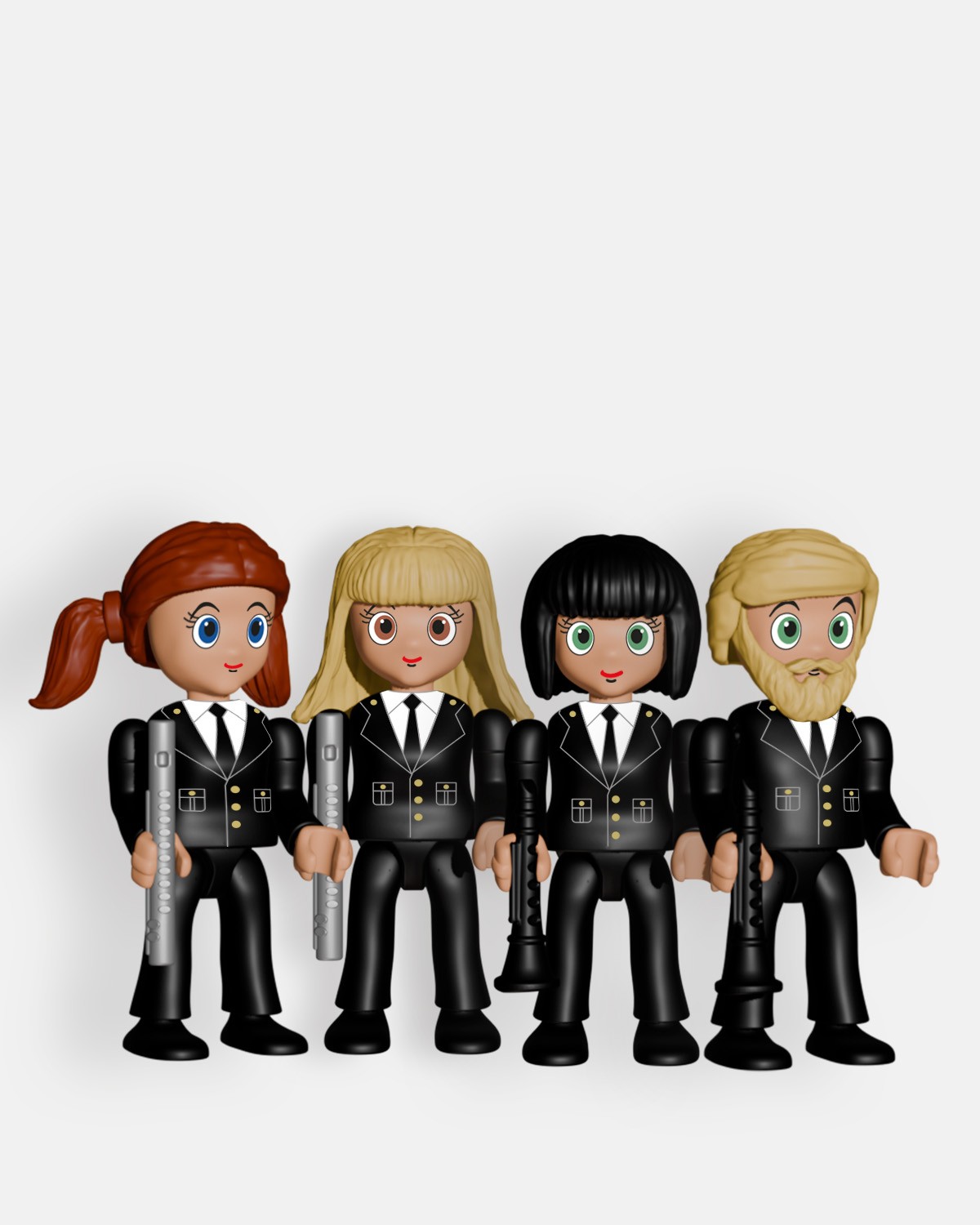 El Pack 4 Músicos 2 Clarinetes y 2 Flautas P9009 de Artabán Juguetes incluye cuatro figuras de músicos con traje de chaqueta negra, camisa blanca, corbata y zapatos negros, portando 2 clarinetes y 2 flautas traveseras, instrumentos de viento utilizados en los desfiles procesionales de Semana Santa. Fabricadas con materiales resistentes y diseño detallado, estas figuras reproducen fielmente la postura, expresión y vestimenta de los músicos, aportando autenticidad y realismo a cualquier colección. Ideal para aficionados y coleccionistas, permite complementar tramos procesionales o recrear escenas de la Semana Santa.