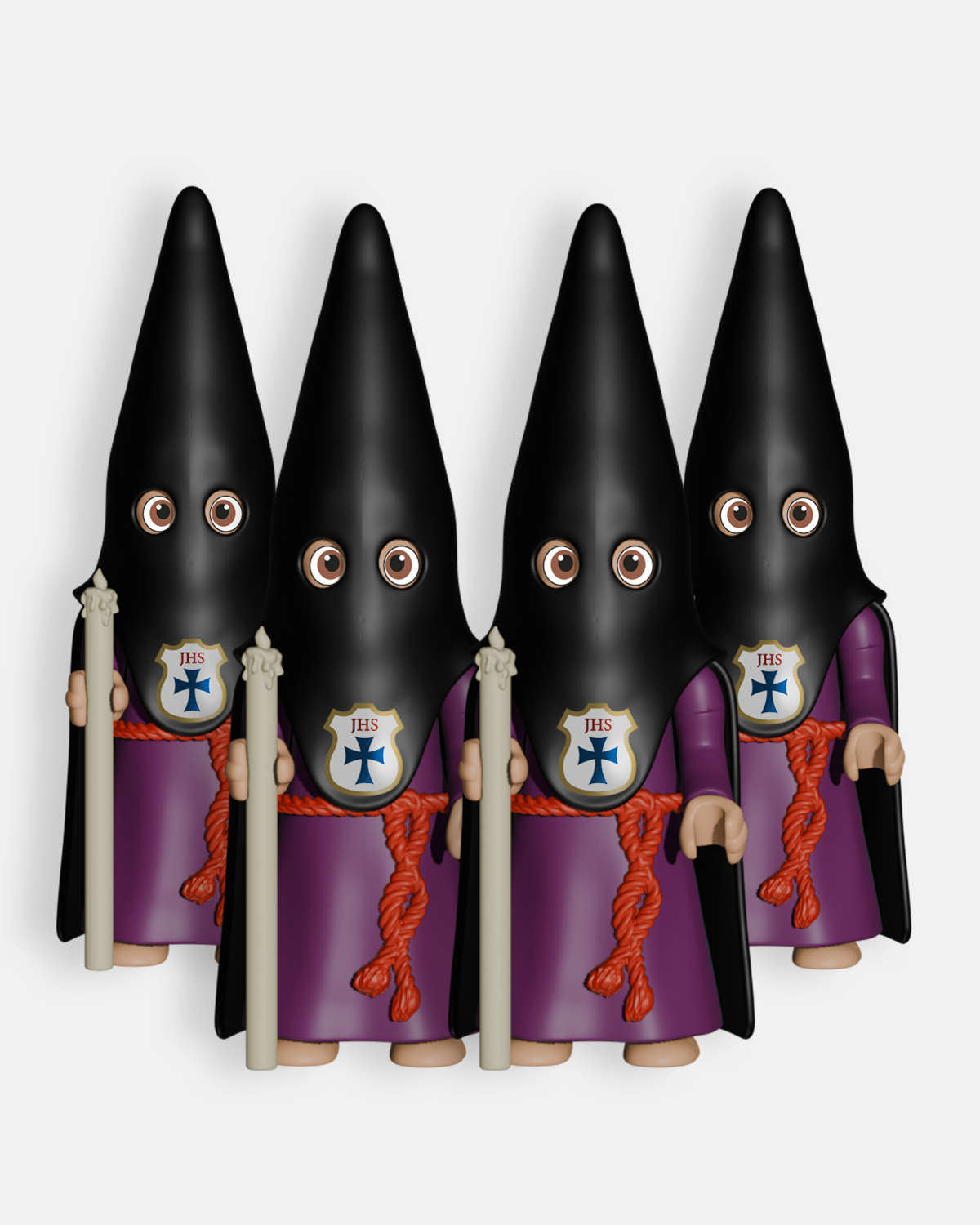 El Pack 4 Nazarenos Negro con Cirio P3002 de Artabán Juguetes incluye cuatro figuras de nazarenos con túnica morada, capa negra, antifaz negro y cíngulo rojo, portando cirios, utilizados en las procesiones de Semana Santa para iluminar y acompañar los pasos. Fabricadas con materiales resistentes y diseño detallado, estas figuras reproducen fielmente la postura, expresión y vestimenta de los nazarenos, aportando autenticidad y realismo a cualquier colección. Ideal para aficionados y coleccionistas, permite complementar tramos procesionales o recrear escenas de la Semana Santa.