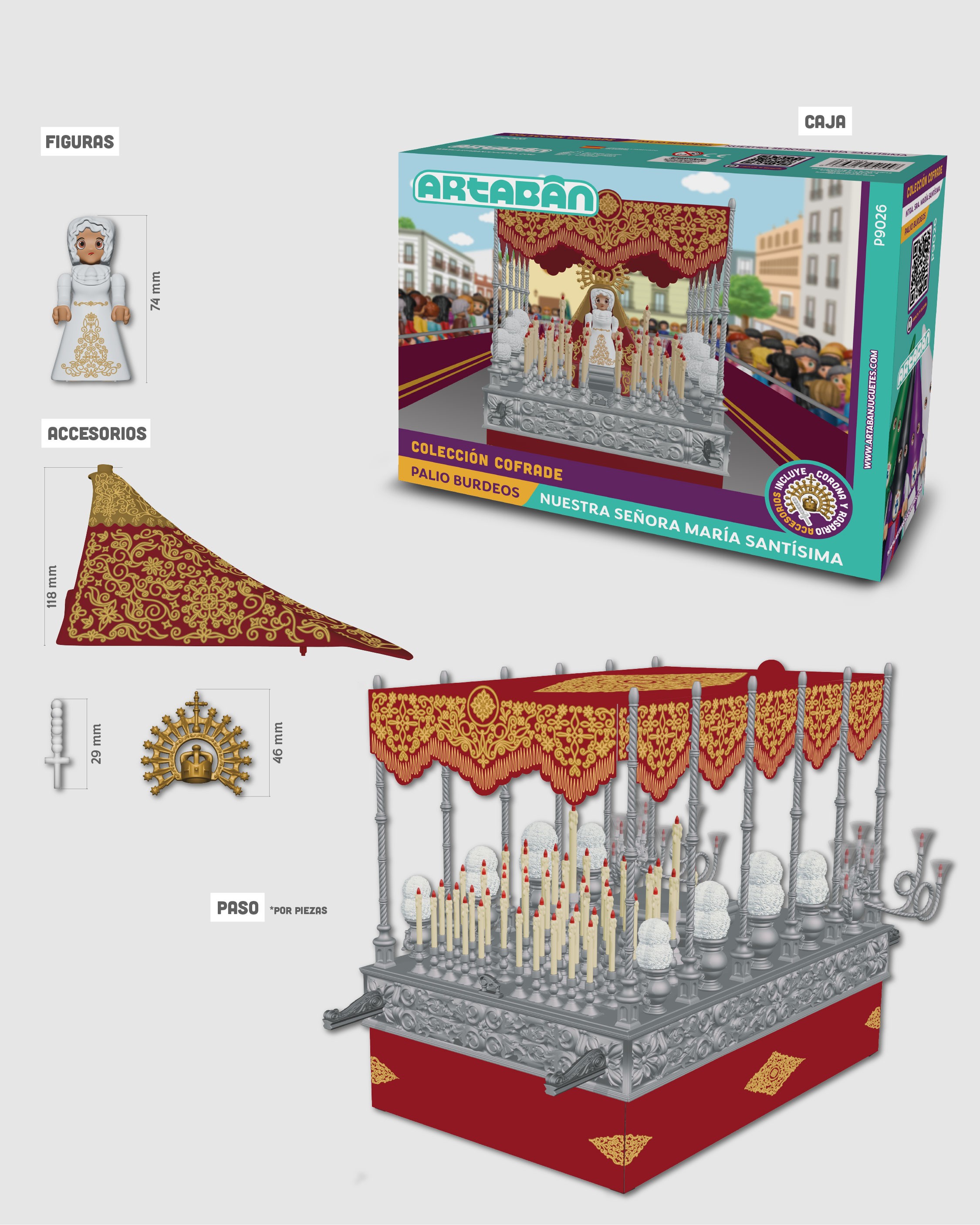 Paso Palio Burdeos P9026 · Semana Santa · Artabán JuguetesEl Paso de Palio Burdeos P9026 es una pieza llena de elegancia y fuerza visual, combinando el clásico burdeos cofrade con detalles dorados en un diseño armonioso y delicado, propio del universo Artabán.